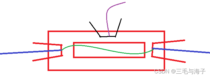 中间是一个铜片以来导电传输 电信号,左右两边分别是个 网线接