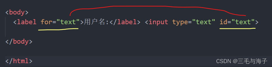 相对应的 input 表单 有一个 id 属性,也有一个名字;