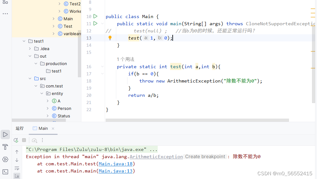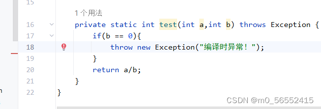 注意,如果我们在方法中抛出了一个非运行时异常,那么必须告知函数的调用方我们会抛出某个异常,函数调用方必须要对抛出的这个异常进行对应的处理才可以: