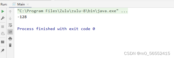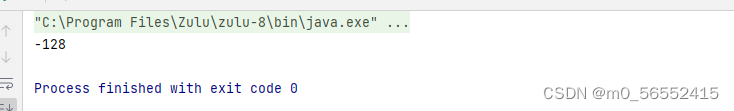 解释:这里的128为 00000000 00000000 00000000 10000000 ->byte只有一个字节,所以说保留最后8位 :10000000 = -128
