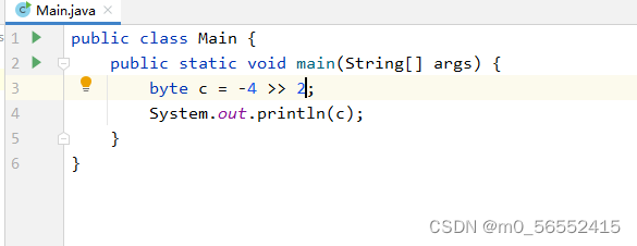 - 1111 1100 >> 2 = 1111 1111 =>取反+1=原码 = -1