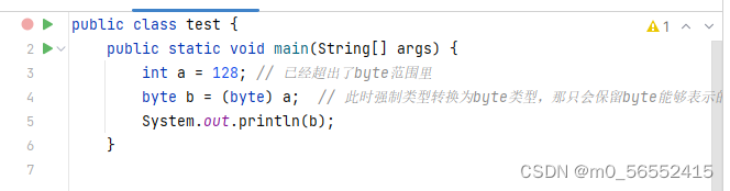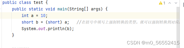 括号除了可以用来提升运算优先级,也可以用作强制类型转换,前面我们介绍了隐式类型转换,但是隐式类型转换存在局限性,比如此时我们希望将一个大的类型转换为一个小的类型: