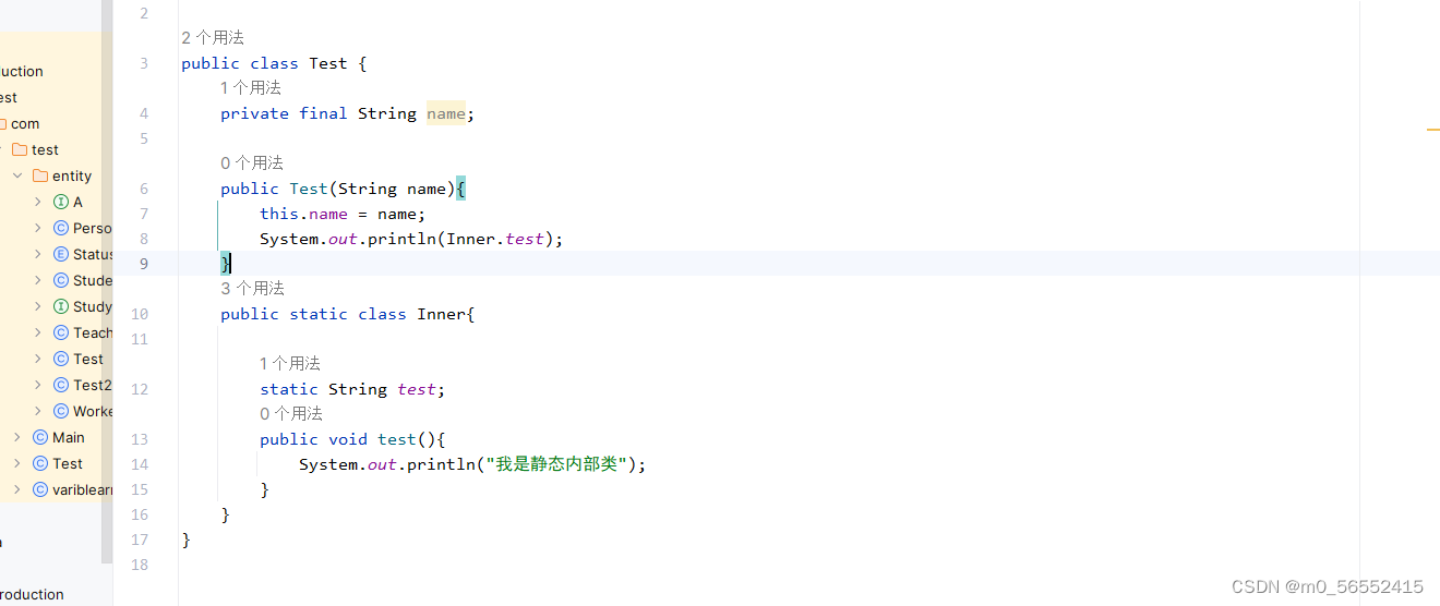 Test.Inner inner1 = a.new Inner(); //依附于a创建的对象,那么就是a的