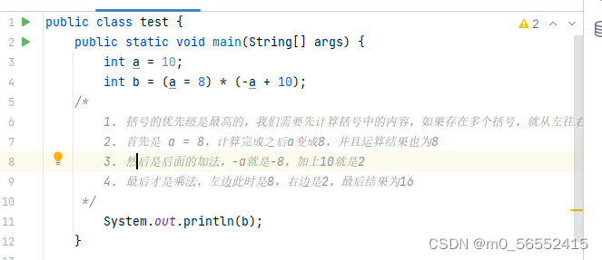 所以先计算左右两边的式子++是右结合性所以左边式子是-8,a现在为9,所以右边式子是10,总体为2。