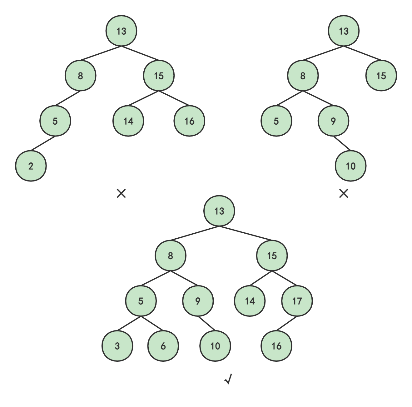 若任意节点的右子树不空,则右子树上所有节点的值均大于它的根节点的值;