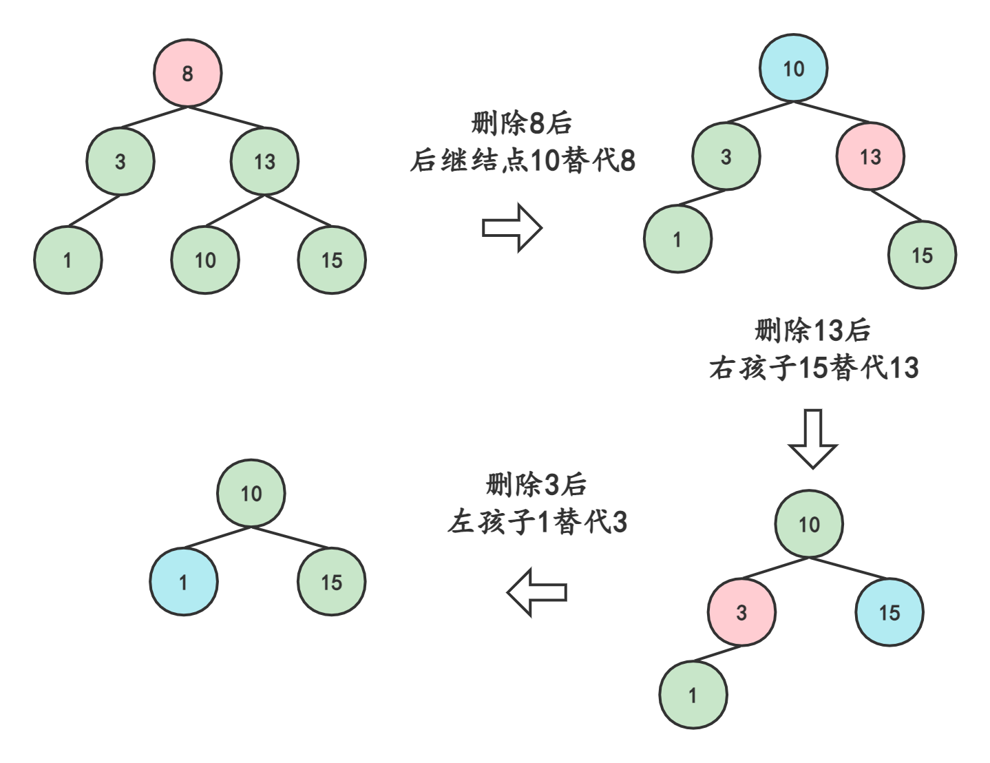 将左子树(右子树)替代原有结点8的位置