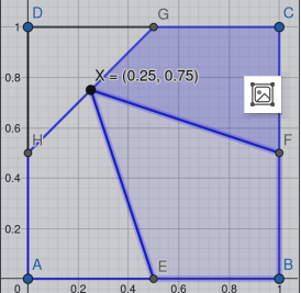 2.Let E = (0.5, 0), F = (1, 0.5), G = (0.5, 1), H = (0, 0.5) be the midpoints of ABˉABˉ, BCˉBCˉ,CDˉCDˉ, DAˉDAˉ, respectively.