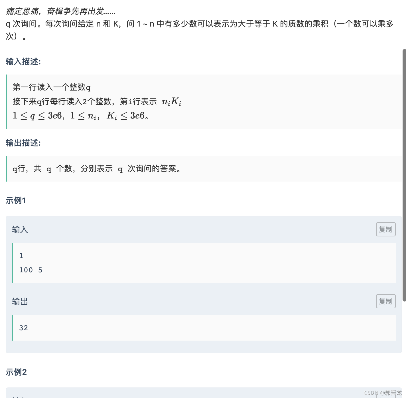 其实题意就是找出1-n最小质因数大于等于k的数的个数