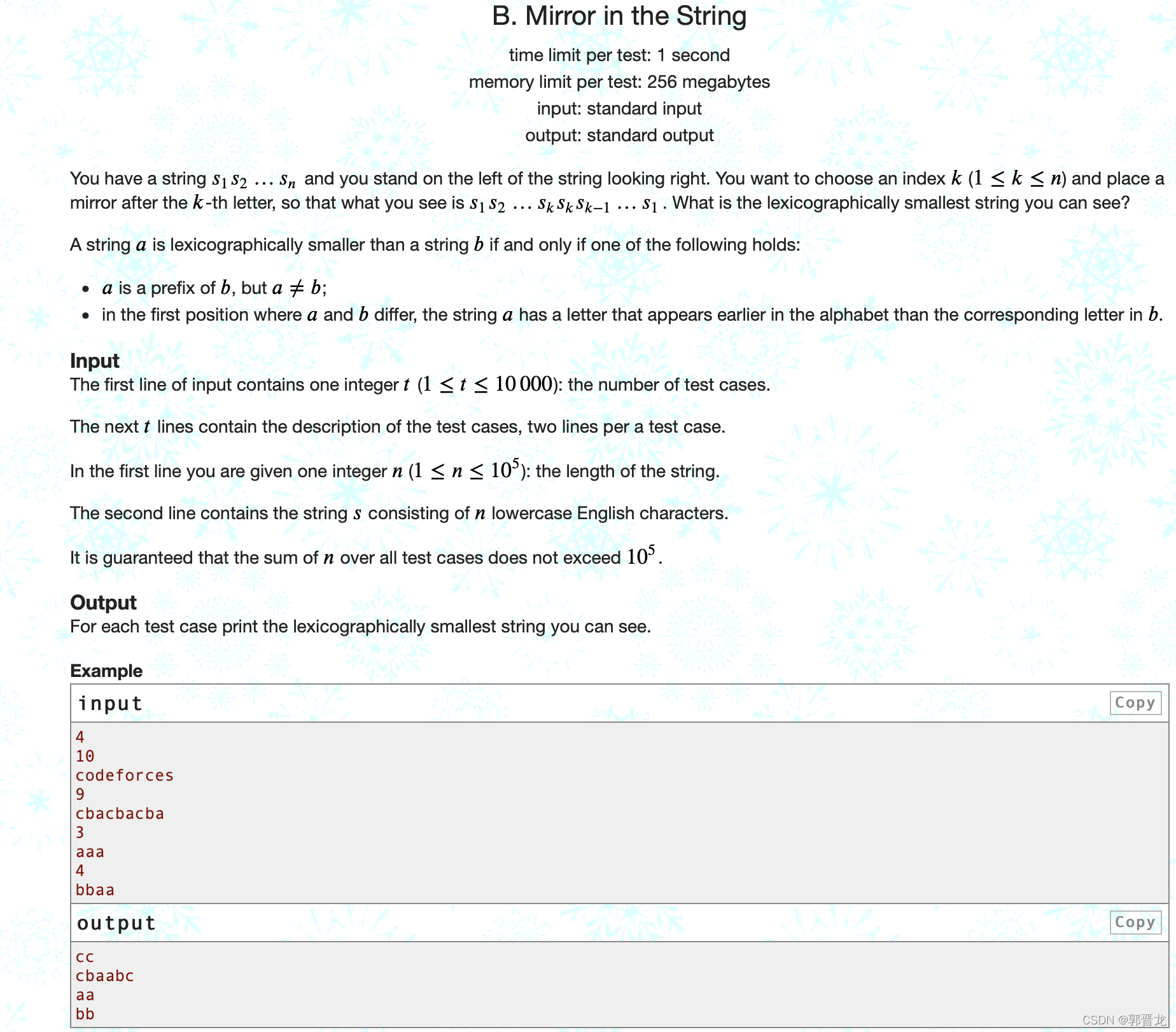 就是从字符串的第一位找一小段字符串 然后镜像对称使其字典序最小
