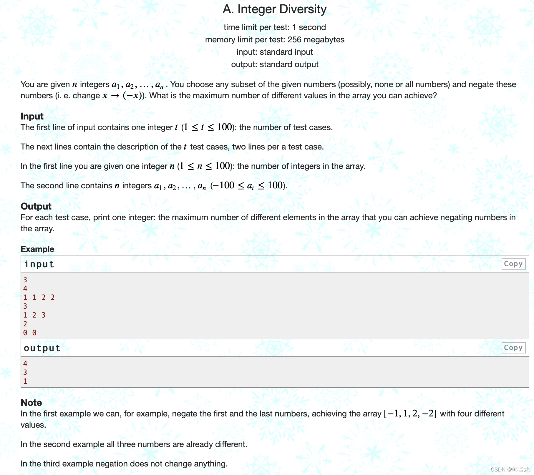 就是给你一个序列 通过改变数字的正负 可以得到最大不同数字的个数是多少