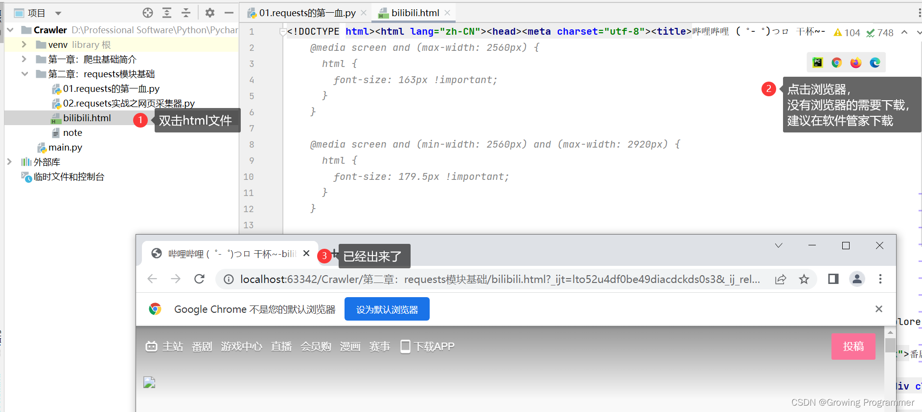 with open('./bilibili.html','w',encoding='utf-8') as fp:fp.write(page_text)