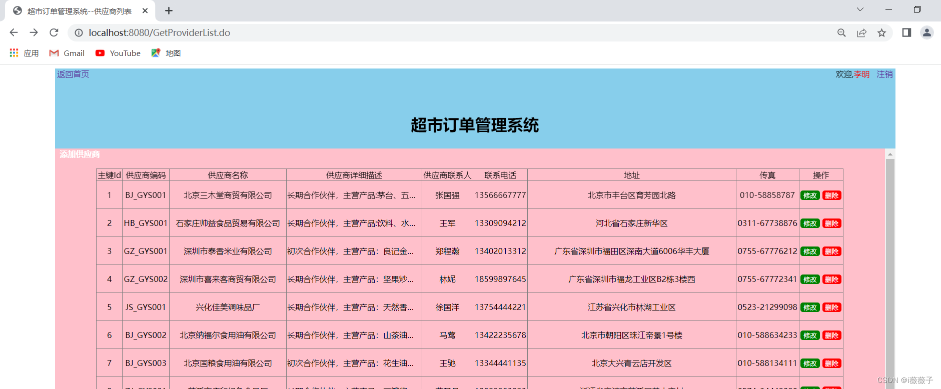2.如果是经理,经理有权利去添加,删除,修改和查询供应商