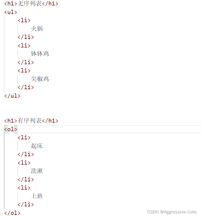 ul:无序列表、数据无关来联、在爬虫领域中使用较多;ol:顺序列表,数据相关联,爬虫使用场景少。