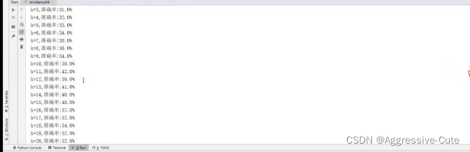 这样就可以通过这个简单的knn(一维方法)进行预测,预测的效果可能不是很精确,接下来就要采取措施提高模型优化。