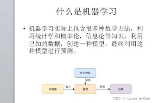机器学习其实就是通过以前的数据,找出规律,建立模型,从而预测未来。机器学习是实现人工智能(AI)的一个途径。