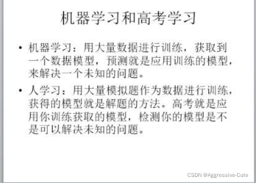 机器学习和我们备战高考其实是一样的道理,我们通过做模拟题,找到出题规律,对一些题目建立模型,找到方法,我们模拟的分数越高,我们的高考成绩就会相应的预测的更好。