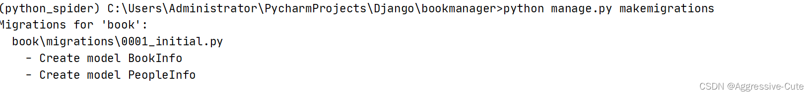 python manage.py makemigrations 生成迁移文件,将类转换为表结构