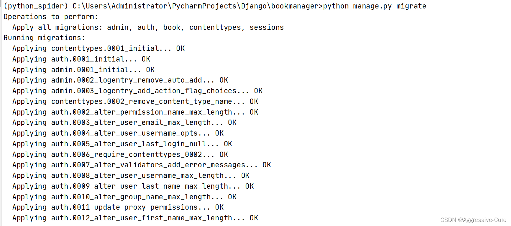 mpython manage.py migrate 执行迁移文件 执行表结构这个文件 才有表(数据库里)