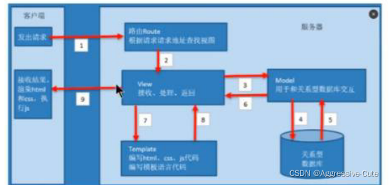 客户端发送请求,路由Route根据请求寻找请求地址查找视图