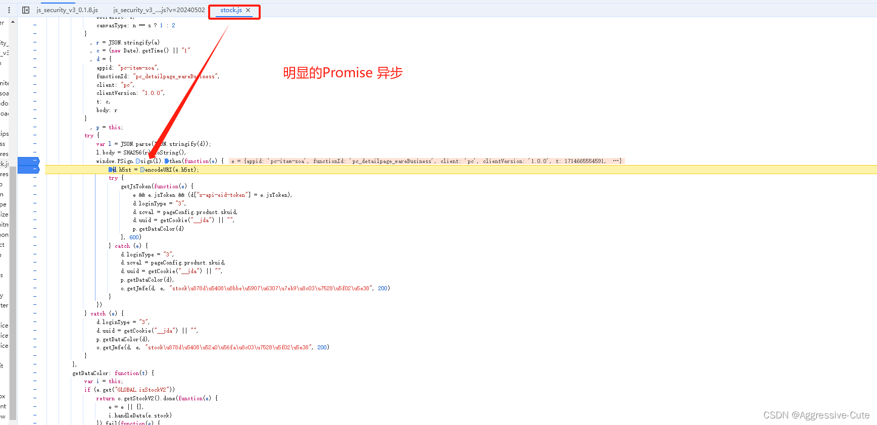 本次h5st算法更新主要是将js代码进行了vmp控制流化,进一步保护了代码,其次对之前的标准算法进行了魔改;这就导致需要花时间去查看魔改的地方,进而实现协议算法。此外,除了以上难点,还需要一些调试的技巧和思维的转变。然后就是一些异步代码的调试方法,可以看下Cute老师的视频学习一些技巧。
