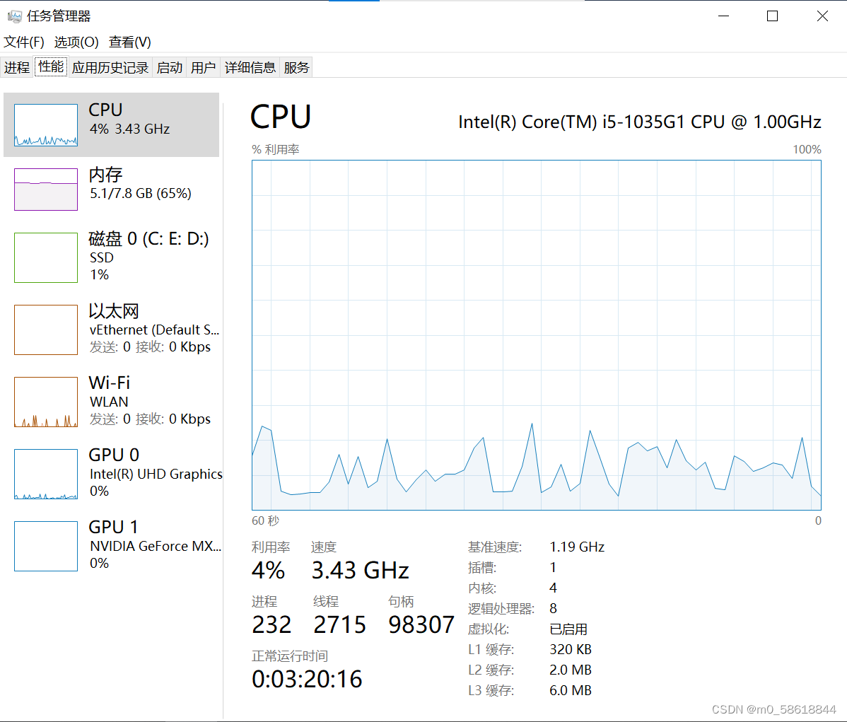 第二,ctrl+shift+esc打开任务管理器→性能→查看虚拟化是否启用,如果启用,可继续进行,若未启用需要,在BIOS设置中→configuration→Inter Virtual Technology→选择enabled