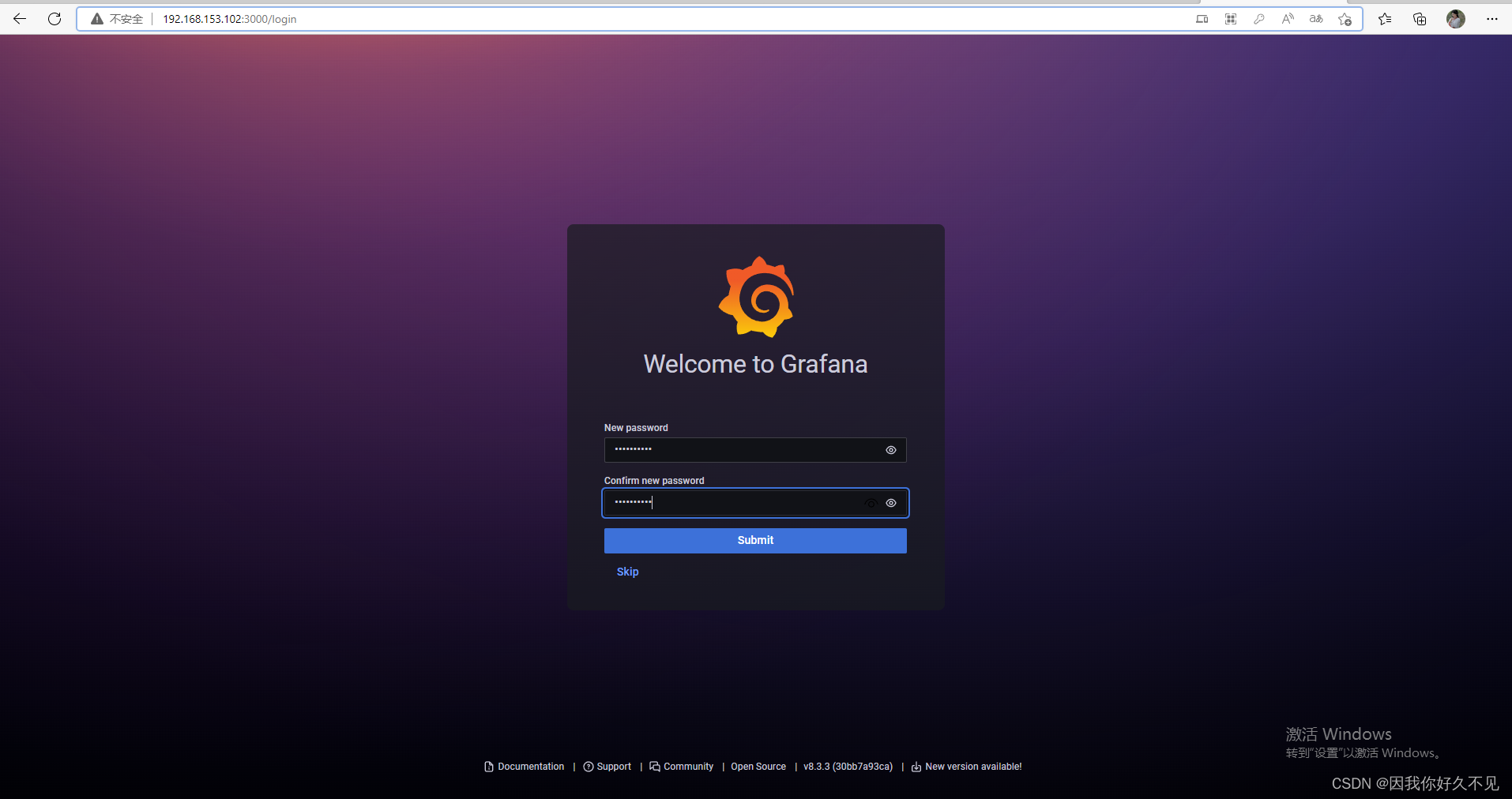 2.5 初始化密码,第一次登陆用户和密码都是admin,登陆成功需要修改。
