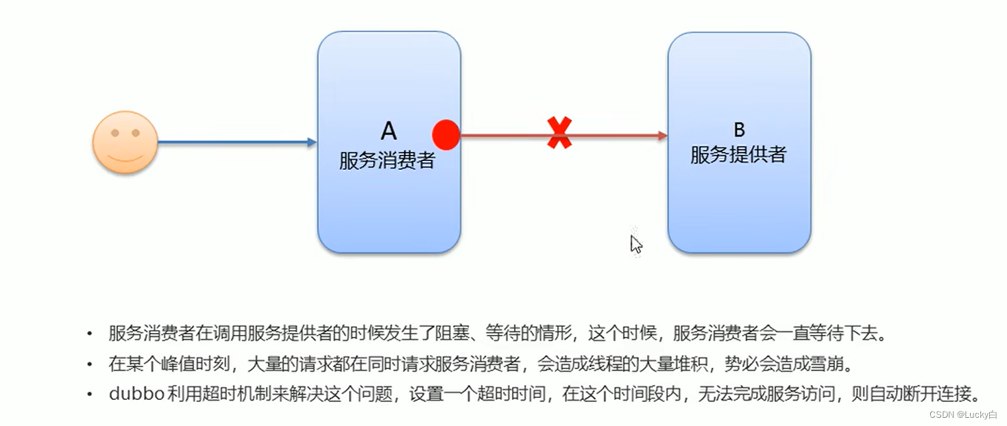 两个数中可以序列化对象,dubbo内部已经将序列化和反序列化的过程内部封装了,我们只需要在定义pojo类时实现serializable接口即可。一般模块会定义一个公共的pojo模块,让生产者和消费者都依赖该模块。注册中心挂了,服务仍然可以正常访问,原因是dubbo服务消费者在第一次调用的时候,会将服务提供方的地址缓存到本地,以后再调用则不会访问注册中心。服务消费者在调用提供者的时候发生了阻塞,等待的情形,这时候,服务消费者会一直等待下去。在某个峰值时刻,大量的请求都在同时请求服务消费者,会造成线程的大量堆积,势必会造成雪崩。dubbo利用超时机制来解决这个问题,设置一个超时时间,在这个时间段内,无法完成服务访问,则自动断开连接。