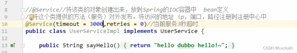 mock=fail:return null表示消费方对该服务的方法调用在失败后,再返回null值,不抛异常。用来容忍不重要服务不稳定时对调用方的影响。