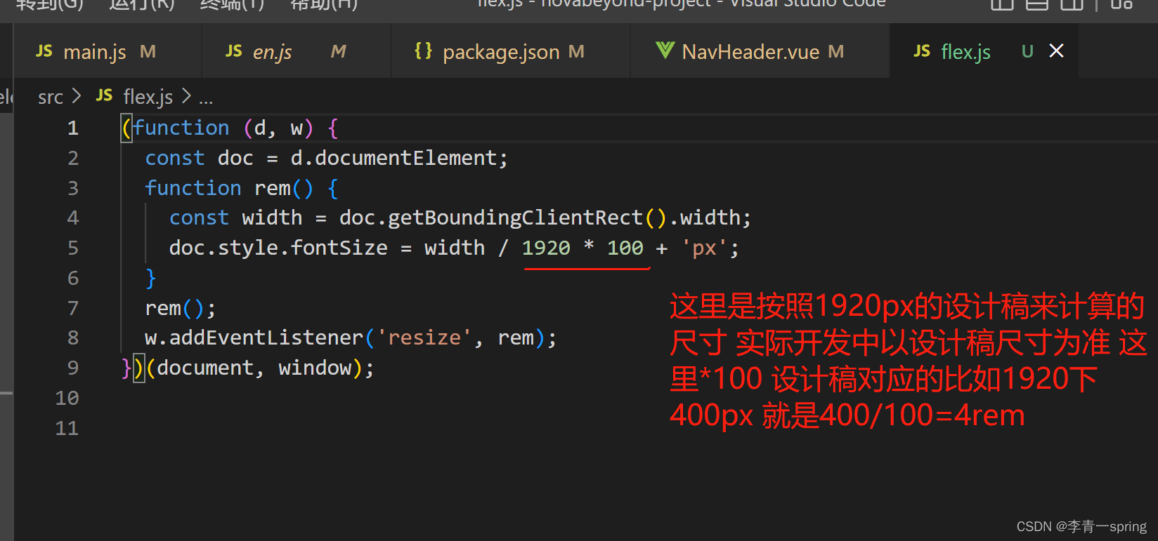 rem布局的核心是设置根元素的font-size,因为我们要实现动态的字体和元素的适配,就不能写死font-size,这里采用动态获取屏幕分辨率尺寸设置font-size