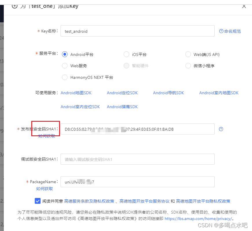 这里的SHA1安全码的获取,可以参考获取安卓apk证书SHA1等签名信息的方法-优快云博客