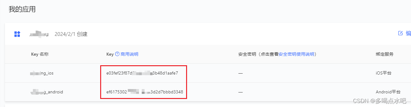 信息填好,提交就获取到了key。