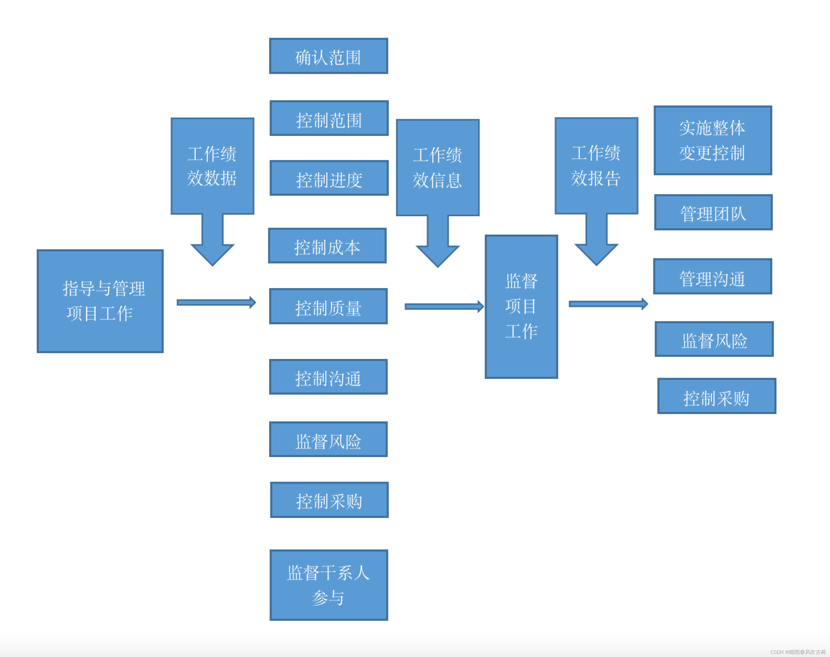 | 六大核心 | 范围 | 质量 | 进度 | 成本 | 安全 | 整体 |