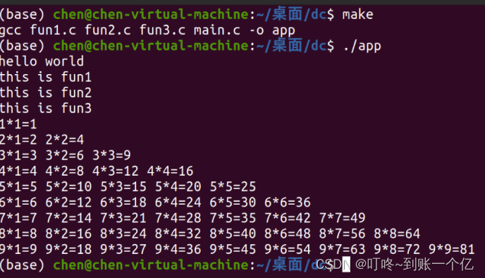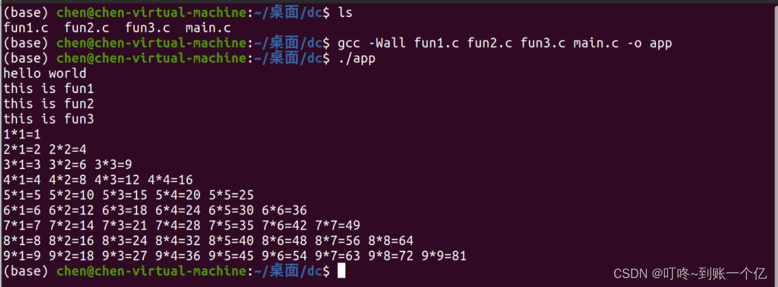 我来解释下这个串代码,首先执行了gcc -c fun1.c -o fun1.o,后面依次执行,最后才执行了gcc fun1.o fun2.o fun3.o main.o -o app。