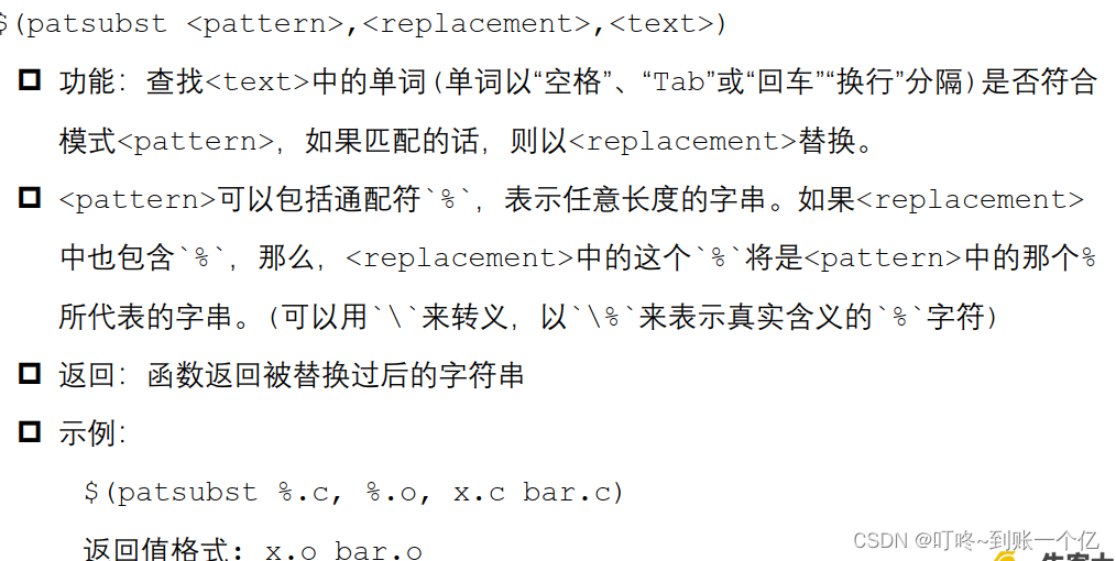 然后将他转换成.o文件。patsubst %.c,%.o,$(src)这个函数的功能是,就是如果第三个参数是和第一个参数后缀一样,我就替换为.o