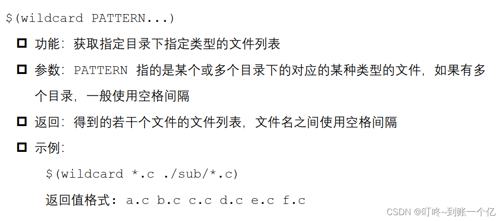 主要通过两个函数wildcard ./*.c。他的意思是寻找当前目录下所有的.c问下,将他的值给src
