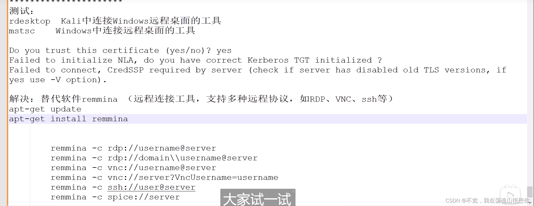 用kali连接远程桌面