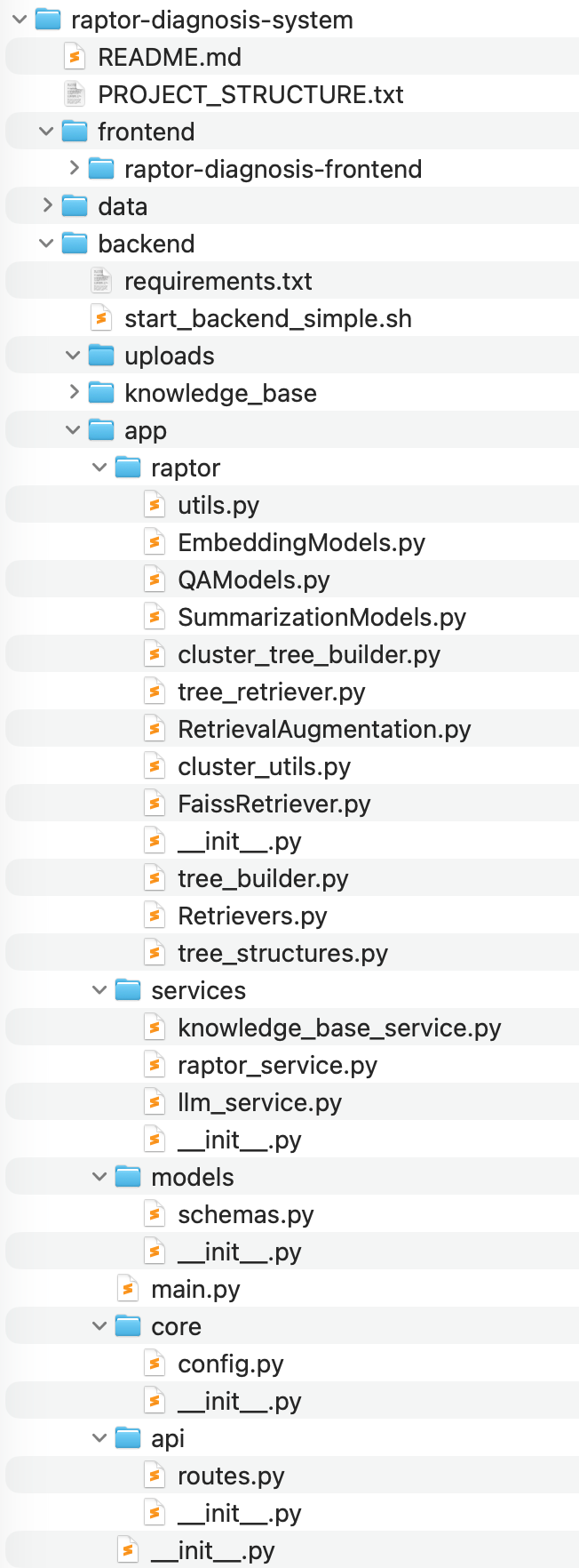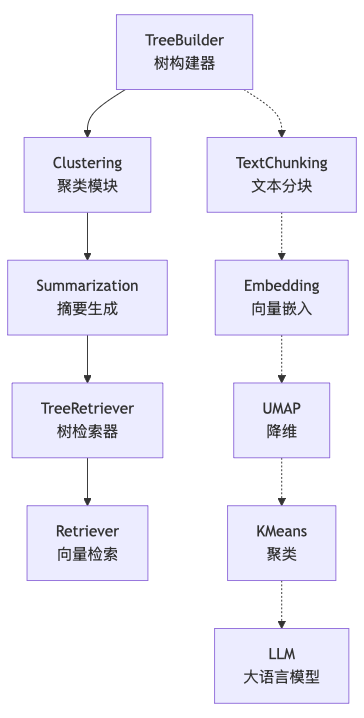 官方RAPTOR(https://github.com/parthsarthi03/raptor/tree/master) 实现采用模块化设计,主要包含以下核心组件: