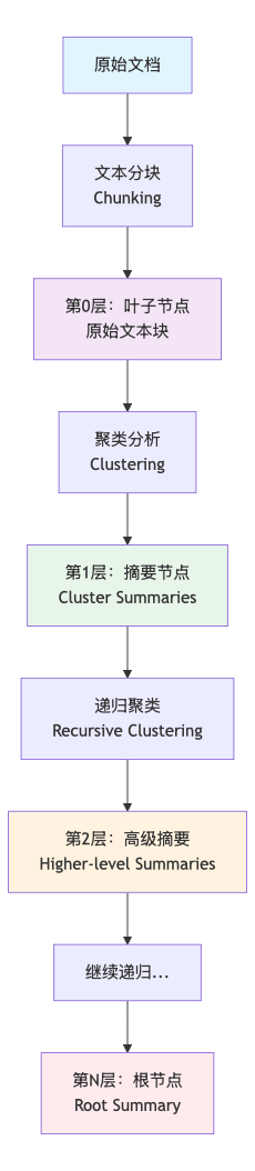 RAPTOR是一种基于树形结构的递归检索系统,其核心思想是通过层次化的方式组织知识,实现多粒度的信息检索和摘要生成。