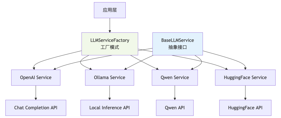为了提高系统的灵活性和可扩展性,项目设计了统一的LLM服务抽象层: