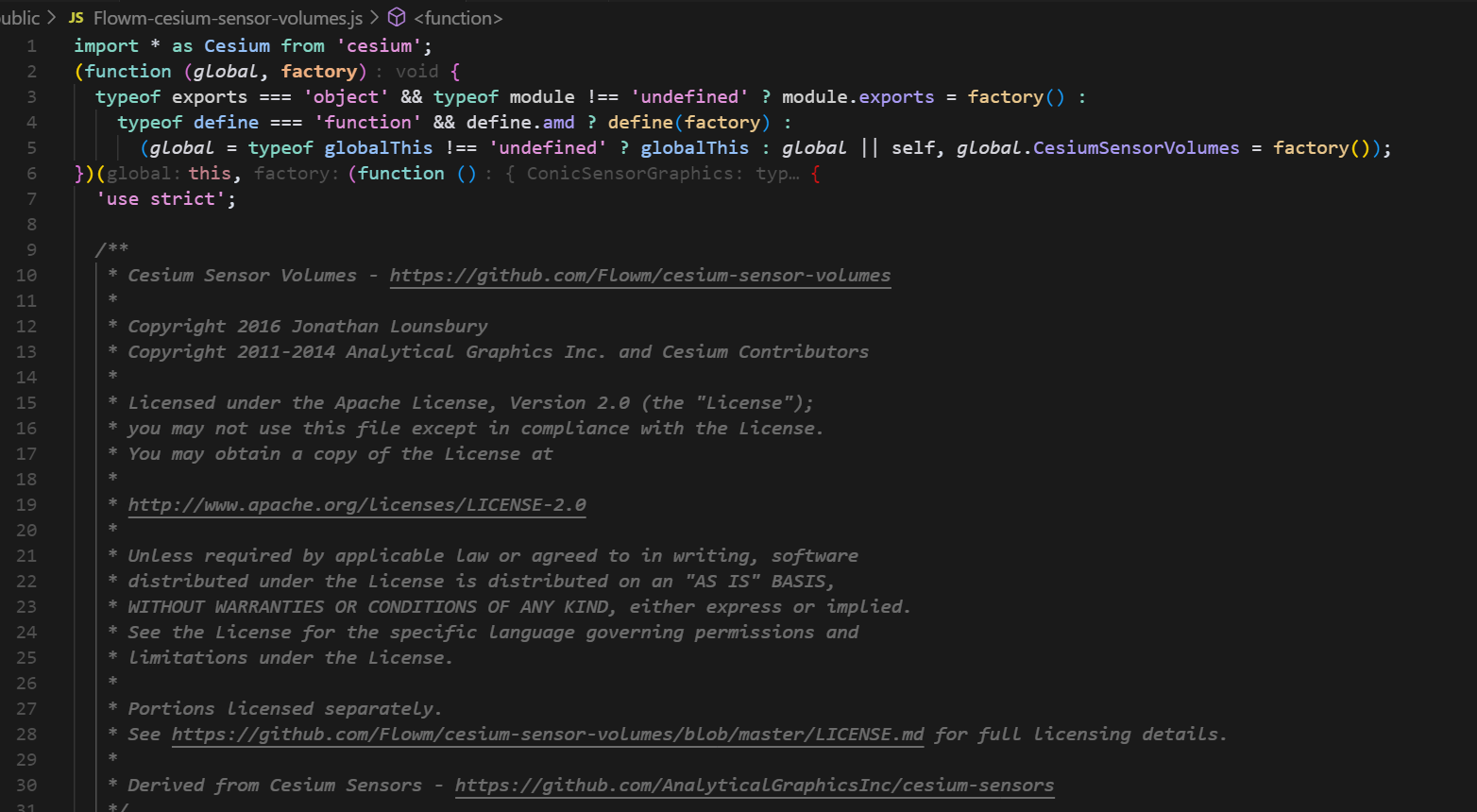 首先我们将插件下载后在js文件最上方引入cesium,如下图所示