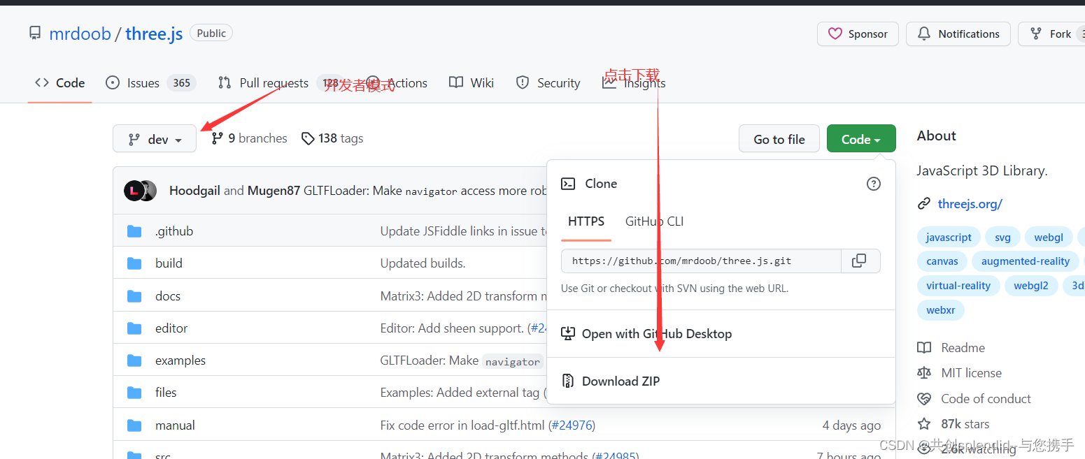 第一步:找到Three.js – JavaScript 3D Library (threejs.org)