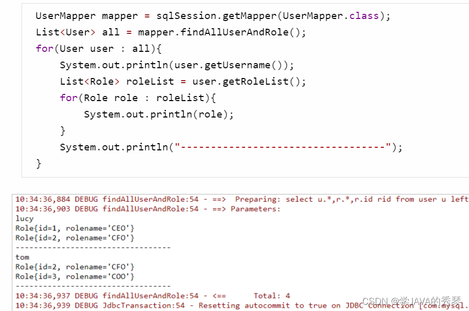 多对多查询的需求:查询用户同时查询出该用户的所有角色