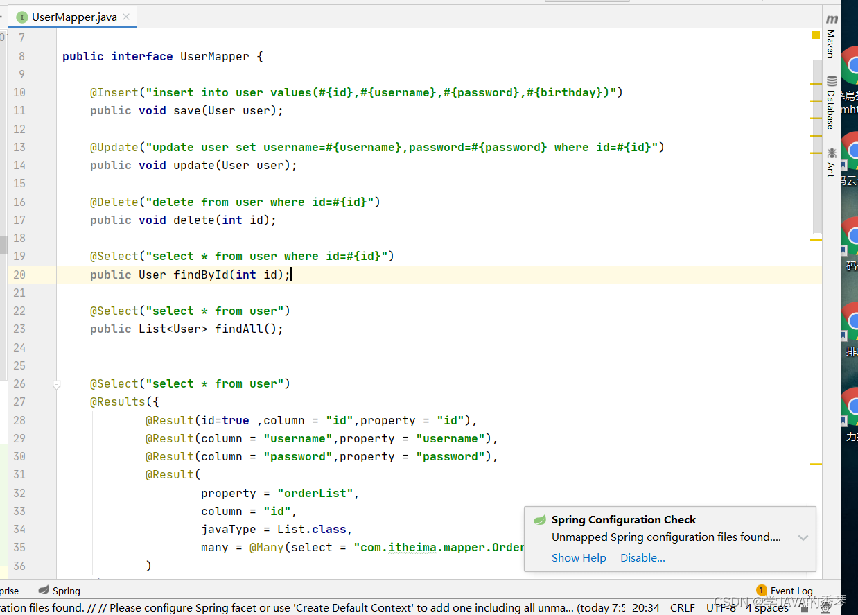 一对多查询:使用注解配置Mapper