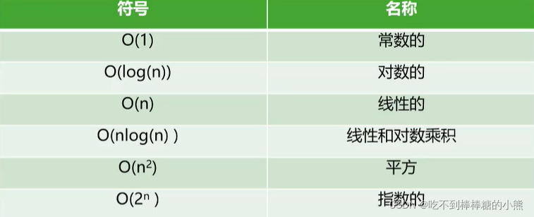 大O符号表示的时间复杂度: