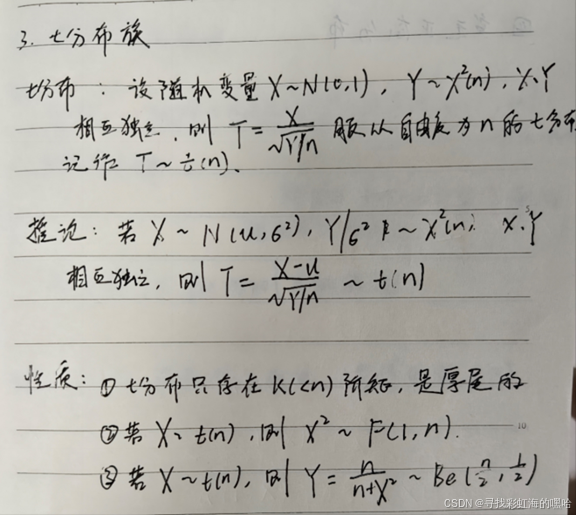 3.1概念:不含有任何未知参数的样本的函数g(X1,X2,......,Xn)